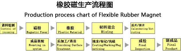 橡胶磁是由铁氧体磁粉或者钕铁硼混合橡胶原料而制成之复合材料,成品由挤压或轧制制成。胶磁具有永久磁性和良好的软韧性,制成品或半成品均可随意刀切、打孔、纵切。胶磁性能比较低,范围在0.4MGOe-1.75MGOe 之间。胶磁由于它通用性强,价格低廉,简单易用等优点而在很多领域有广泛应用